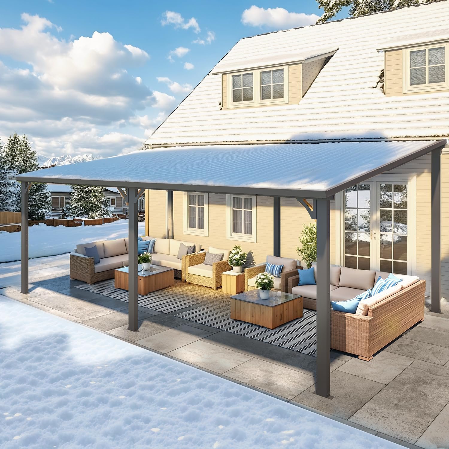 Unlike lightweight patio covers, the hardtop canopy delivers enhanced rigidity and durability under sun exposure, rain, and moderate snow conditions.